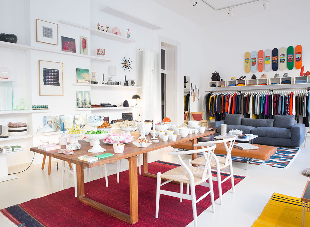 Etablierte Marken treffen auf aufregende Newcomer, expressives Design auf Understatement, Manufakturprodukte auf ganze Einrichtungsserien. Neben dem Herzstück des Stores, den verschiedenen Möbelkollektionen, finden sich weitere Warengruppen, von Accessoires und Leuchten über köstliche Süßigkeiten, handgefertigten Kerzen, erlesenen Düften, ausgewählten Büchern und Vinyl und nicht zu vergessen Mode.